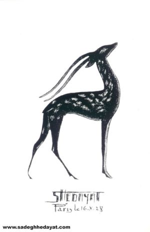 صادق هدایت نقّاشی هم میکرد و برخی طرحهای او موجود است. از جمله آهویی که در مجموعه آثار هدایت چاپ انتشارات امیرکبیر بر جلد کتابهای او نقش بسته است. جهانگیر هدایت، برادرزادهٔ او مجموعهای از این نقاشیها را با عنوان «آهوی تنها» منتشر کرده است.[۶۱]
