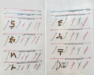 صفحه ای از کتاب سلجوقنامه، معرفی تمغای تُرکان اغوز. قرن ۱۵ میلادی (تمغای بایندر، صفحه سمت چپ، تمغای اول)