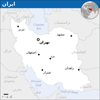 ایران با نام رسمی جمهوری اسلامی ایران، کشوری در غرب آسیا است. این کشور از غرب با ترکیه و عراق، از شمال غربی با ارمنستان و جمهوری آذربایجان، از شمال با دریای خزر و ترکمنستان، از شرق با افغانستان و پاکستان، و از جنوب با دریای عمان و خلیج فارس هممرز است.[۶] مساحت این کشور ۶۳۶۳۷۴ مایل مربع (۱۶۴۸۲۰۰ کیلومتر مربع) است. جمعیت این کشور بر اساس تخمینهای سال ۲۰۰۵ میلادی، ۶۹٬۵۱۵٬۰۰۰ نفر بوده است.[۷] زبان رسمی کشور ایران، فارسی و پایتخت آن تهران است.[۸]