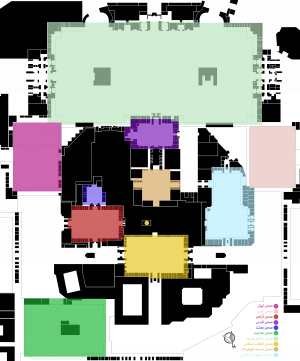 - ↑ فقط شامل مساحت سطوح باز و بدون احتساب مساحت غرفهها و ایوانها.