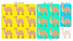 طبق عادات و رسوم، سه پسر برای حل مشکل خود نزد یک مقام دینی، قاضی یا معتمد شهر میروند تا مشکل را برایشان حل کند. مرد مورد نظر معما را اینگونه حل میکند: او یک شتر خود را به آنها قرض میدهد تا تعداد شترها به ۱۸ برسد. سپس تقسیم را بر مبنای ۱۸ شتر میدهد: ۱۸ تقسیم بر ۲ میشود ۹ شتر (سهم پسر بزرگتر)، ۱۸ تقسیم بر ۳ میشود ۶ (سهم پسر وسطی) و ۱۸ تقسیم بر ۹ میشود ۲ (سهم پسر کوچک). اکنون جمع کسرهایی که سهم سه برادر را تعیین میکند، کمتر از یک است: ۱۷⁄۱۸=۱⁄۹+۱⁄۳+۱⁄۲[الف] پس یک شتر باقی مانده است که همان شتر قرضی است و به صاحبش پس داده میشود.[۱]