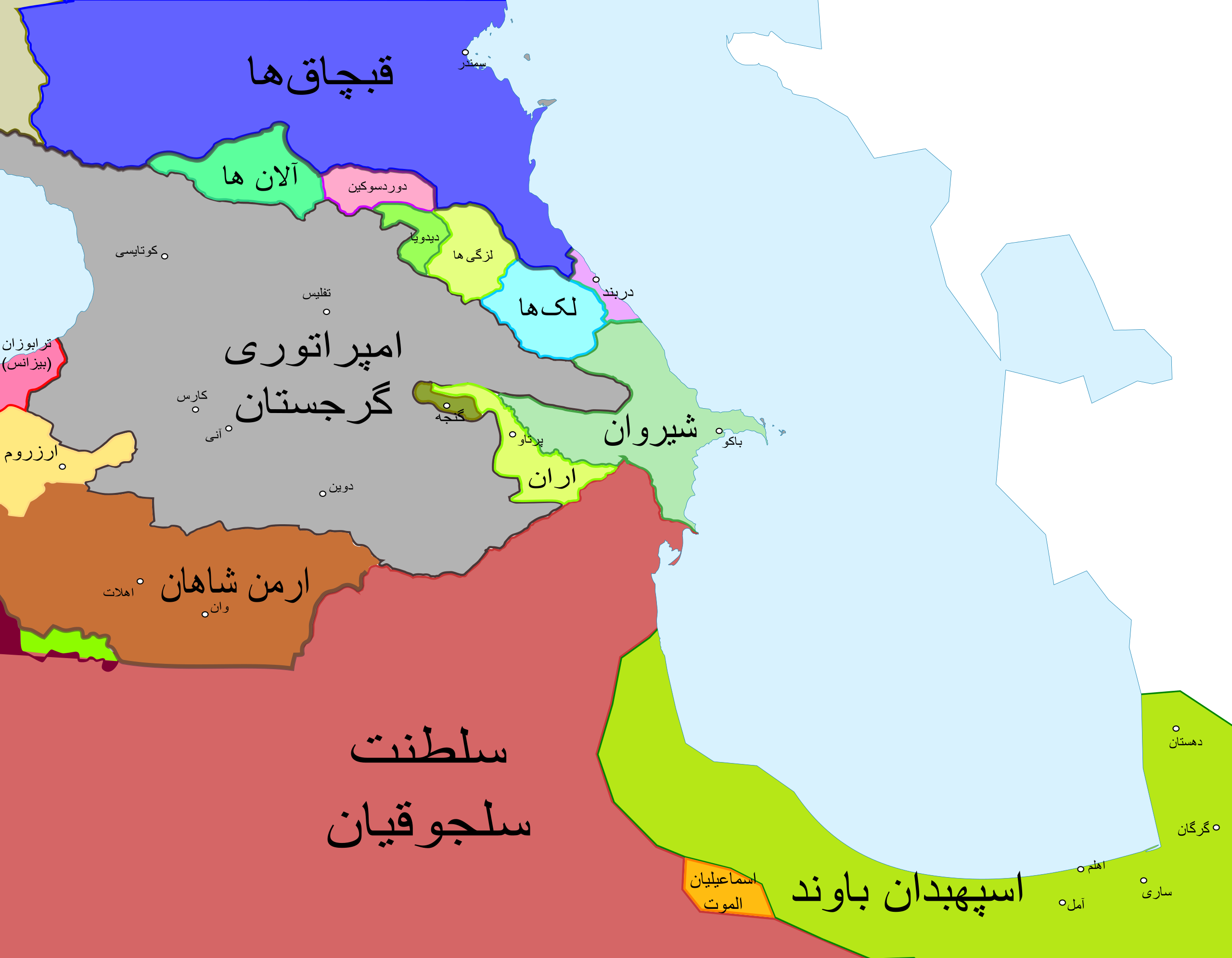 پرونده:Caucasus and Caspian 1160 AD fa.svg