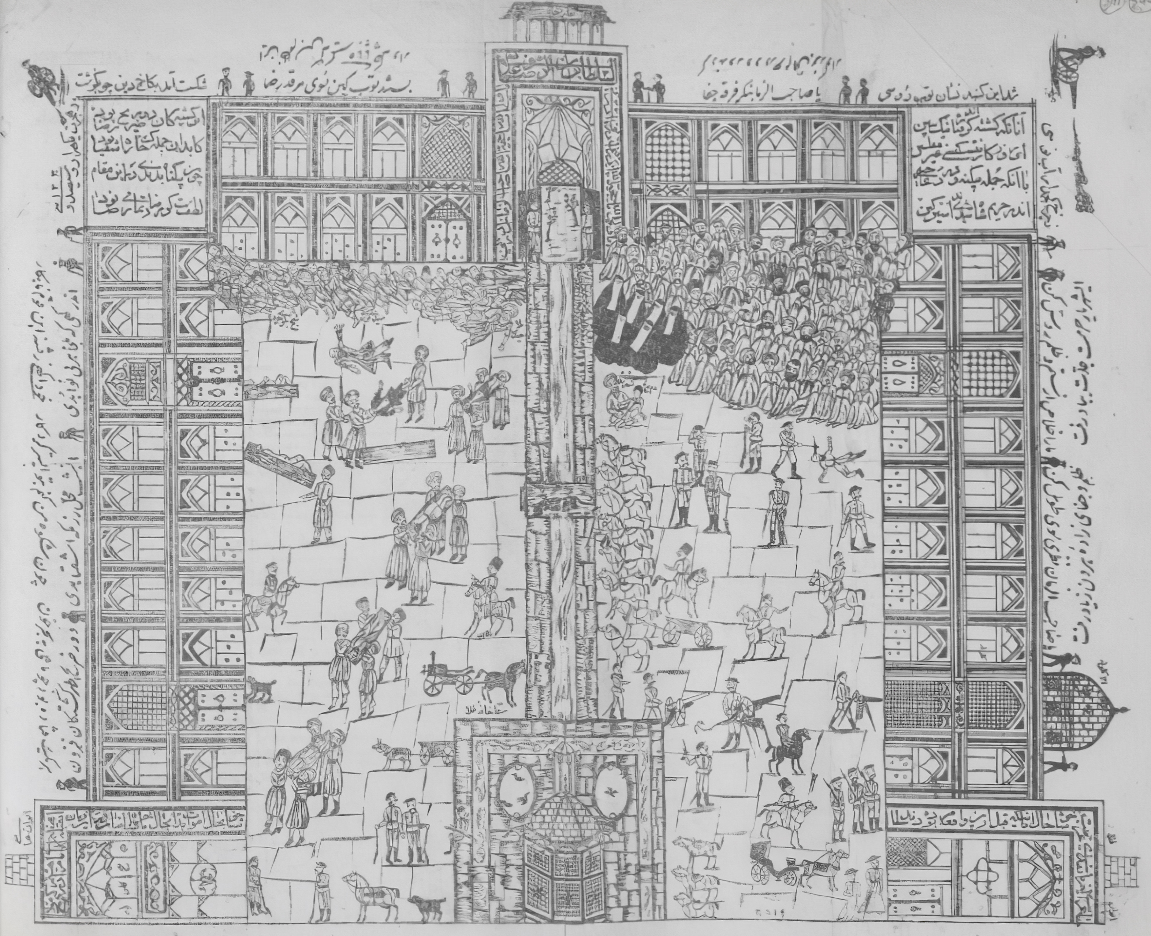 نقاشی واقعه به توپ بستن حرم امام رضا توسط قوای روس، اثری از میرزا طاهر مشرف (رضوی)
