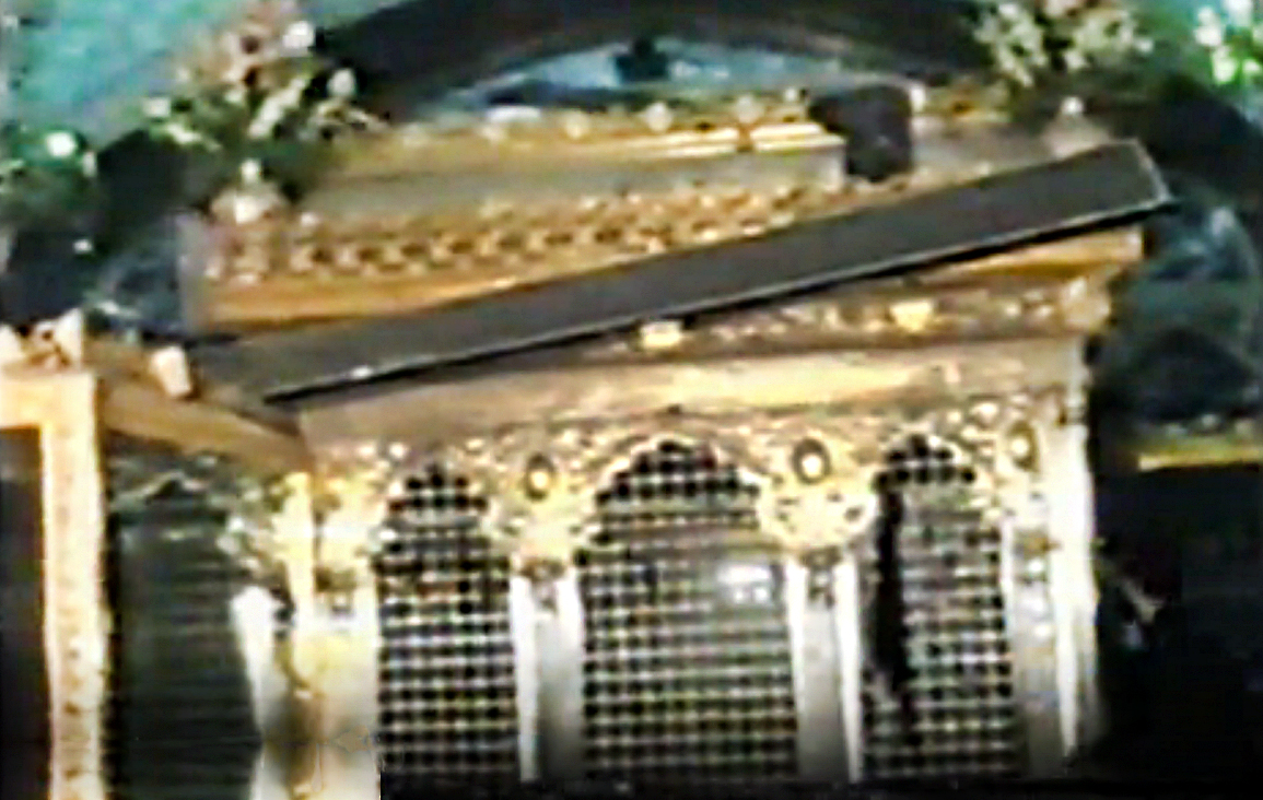 عکسی از ضریح پس از انفجار بمب در حرم امام رضا، عکس از روی نسخه فیلم منتشر شده توسط آستان قدس رضوی گرفته شده است۔